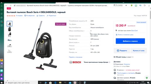 Скидка более 10% на бытовой пылесос Bosch Serie 4 BGLS48GOLD смотри как получить