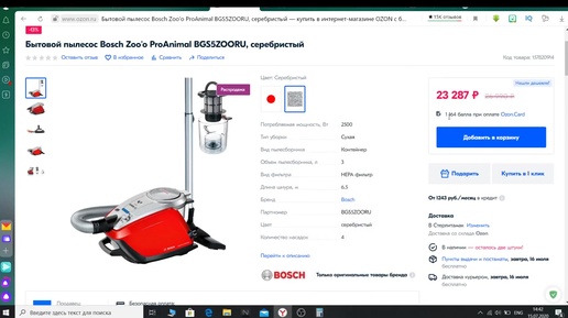 Скидка более 10% на бытовой пылесос Bosch Zoo'o ProAnimal BGS5ZOORU смотри как получить