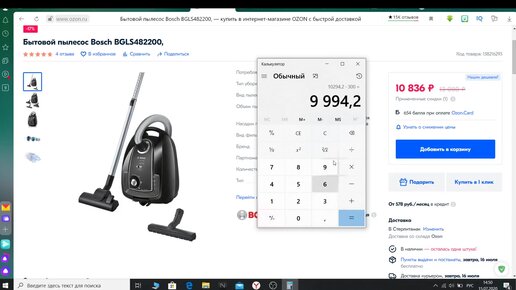 Скидка более 10% на бытовой пылесос Bosch BGLS482200 смотри как получить