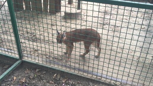 Агрессивная кошка ходит по своей клетке и рычит