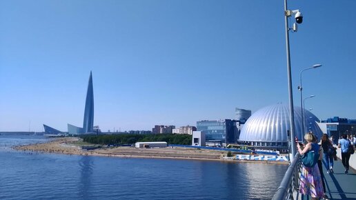 Пляж в парке 300-летия Петербурга. Башня Газпром, Зенит арена, Яхтенный мост и другие красоты