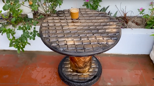 Трудно поверить, что этот оригинальный столик сделан практически из хлама