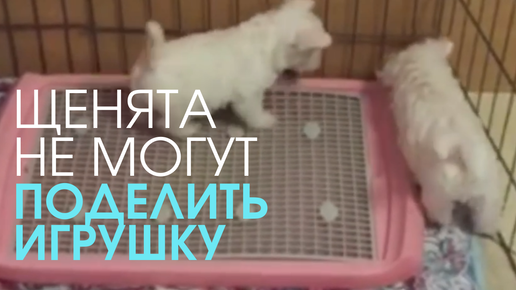 Щенята никак не могут поделить игрушку)