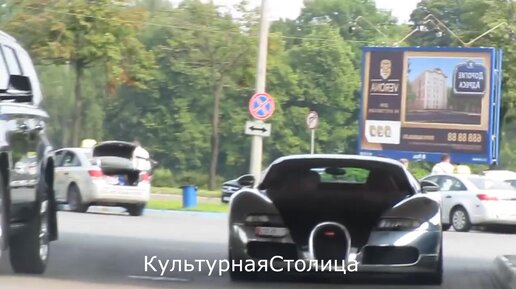 Bugatti Veyron на заправке в Санкт-Петербурге с охраной