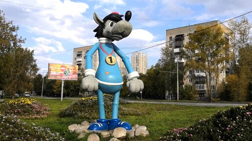Волк из "Ну, погоди!" охраняет лужайку с цветочками