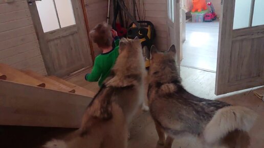 Великое противостояние маленький Артур с печеньем и 5 голодных Хаски.