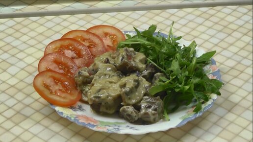 Бефстроганов с шампиньонами в сливочном соусе