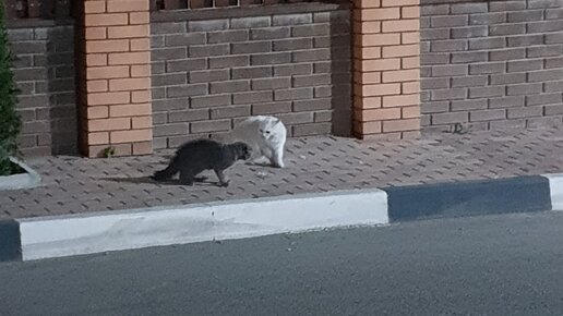 Две кошки устроили конфликт между собой на улице