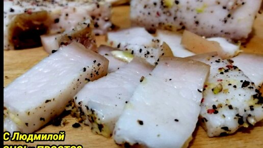 Сало, солёное со специями. Очень простой способ, и сало долго не "стареет"
