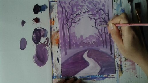 Когда все фиолетово (пейзаж гуашью пошагово)