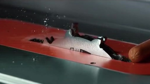Слоумо в 19 000 кадров в секунду: зубья пилы разлетаются из-за экстренной остановки.