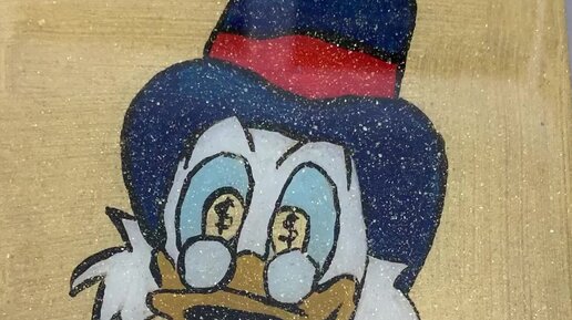 Рисуем богатую утку Скруджа макдака, акрилом, заливаем смолой с блестками.