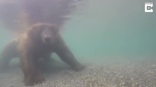 Мишка охотится под водой!!!