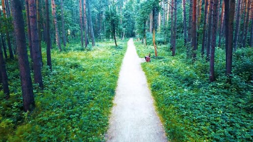 Тренируюсь лететь над тропинкой в парке, держа её в центре кадра. Почему-то мне казалось, что лететь по прямой проще всего.