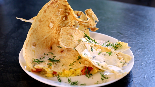 Запеченный в лаваше омлет с помидорами