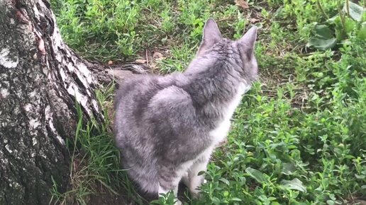 Вылечила серого бездомного кота от паразитов , он довольный бегает,