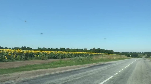 Вдоль дороги красивые подсолнухи. Солнечный путь