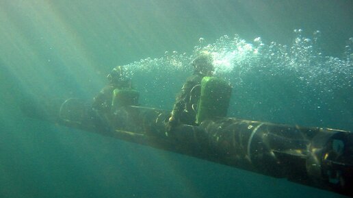 Морские диверсанты и их "подводные мотоциклы"...