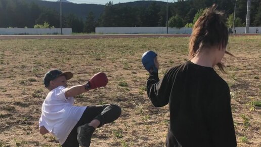 Тренировка по каратэ на стадионе. Усовершенствование ударов ногами, равновесия, скорости и реакции.