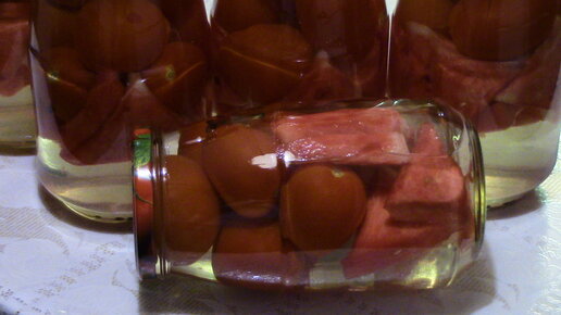 Консервированные помидоры с кусочками арбуза. Просто и вкусно!