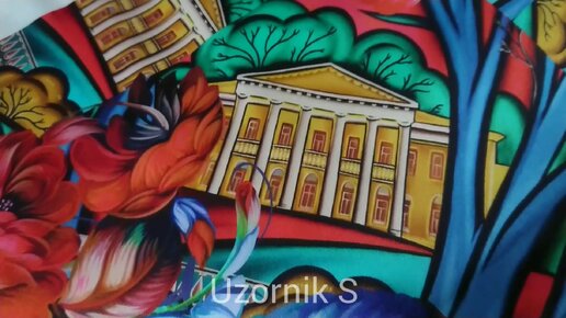 Архивный жостовский поднос на павловопосадском платке