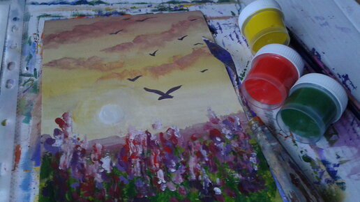 Легкий пейзаж гуашью | Рисуем поэтапно