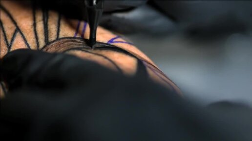 Нанесение татуировки в замедлененной съёмке