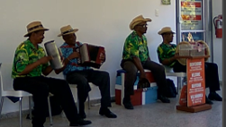Доминиканские музыканты играют на национальных инструментах и поют