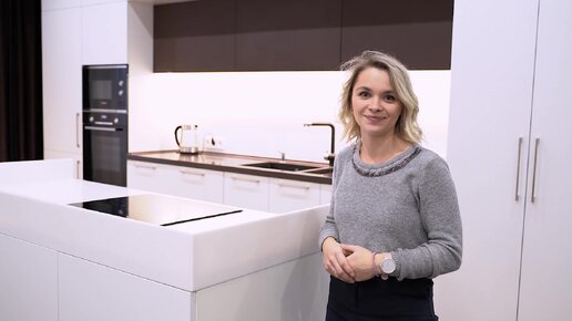 Обзор квартиры с белой кухней и островом. Дизайн интерьера квартиры в современном стиле.