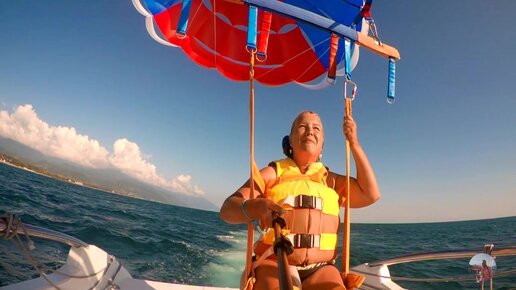 На пляже много рассказывали о "плавном парении" с парашютом за катером. Опробовала "развлечение" на себе. Делюсь эмоциями