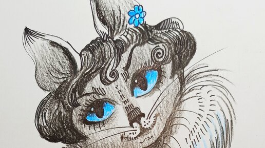 Женщина - кошка, скетчинг маркером и карандашами.