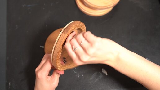 Обрабатываю шкуркой деревянное основание для будущего ночника