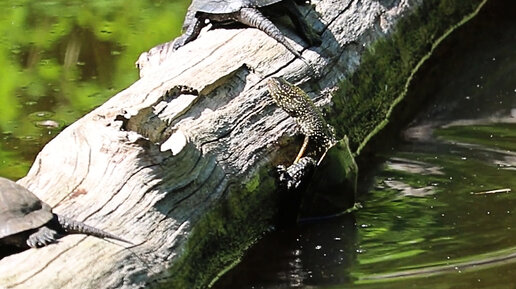 Черепаха и коряга. Непросто вылезти из воды, если у тебя на спине панцирь...