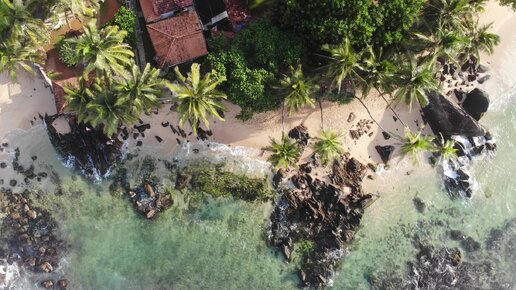 Живописный пляж на Шри-Ланке! Волны, пальмы и красивая девушка - идеальное сочетание.
