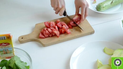 Лайфхак. Летнее веганское блюдо из кабачков, помидоров и подорожника