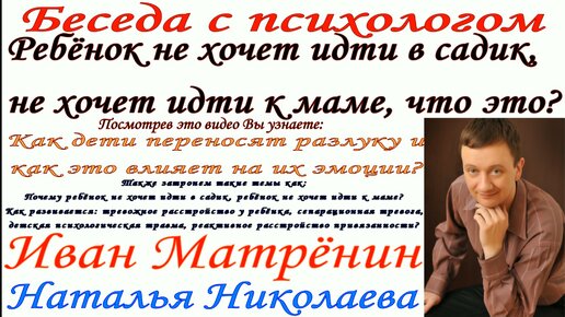 Ребёнок не хочет идти в садик, не хочет идти к маме, что это?Беседа с психологом.Иван Матрёнин и Наталья Николаева.