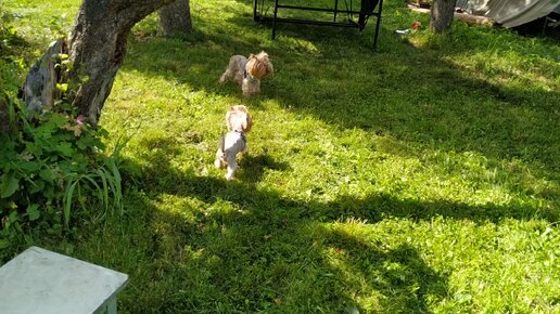 Мои милые йорки резвятся на даче
