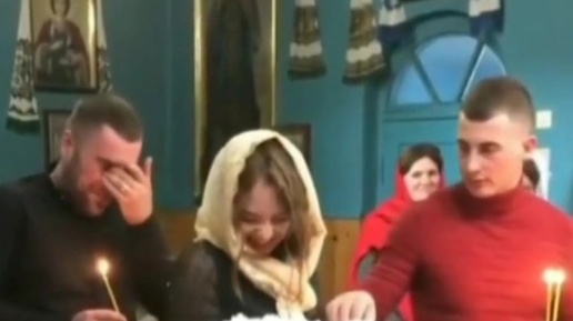 Во время крещения, мужик случайно поджог девушке платок свечкой