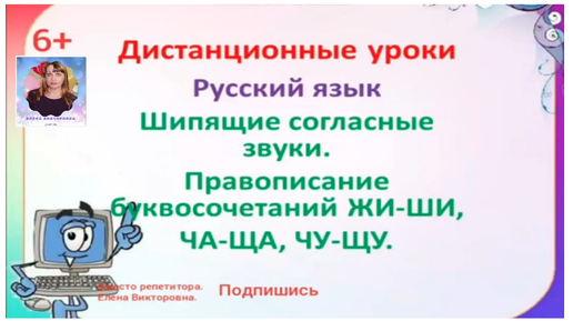 Дистанционный урок по русскому языку по теме "Шипящие согласные звуки. Правописание буквосочетаний"