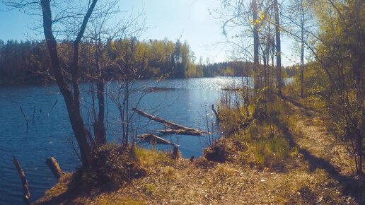 Искрящаяся на солнце поверхность озера Нырково, Ленобласть