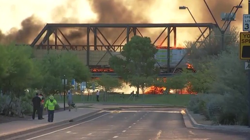 В городе Темпе (штат Аризона) поезд сошел с рельс и загорелся.