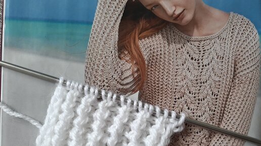 Далее: Вяжу на балконе. Простой эффектный узор спицами для жилета, шапки и многого другого