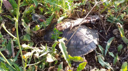 ИНТЕРЕСНАЯ ПРОГУЛКА КРАСНОУХОЙ ЧЕРЕПАХИ НА СВОБОДЕ