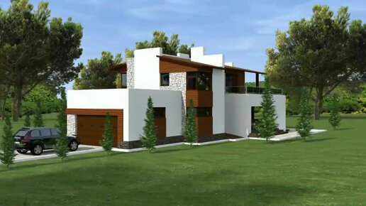 Современная архитектура частного дома. Двухэтажный дом с эксплуатируемой кровлей.