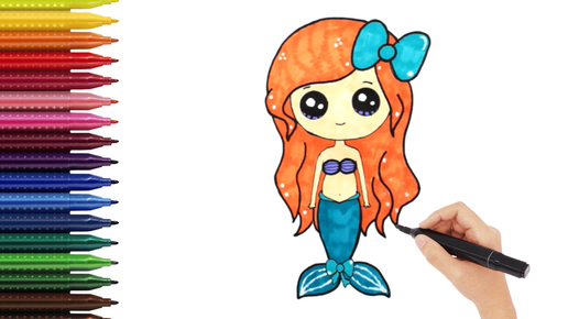 Как нарисовать МИЛУЮ РУСАЛКУ / КАВАЙНЫЕ РИСУНКИ / Мультик раскраска | How to draw a CUTE MERMAID