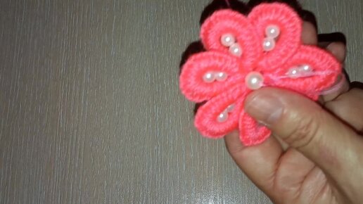 Цветы на резинке из ниток и бусин без крючка