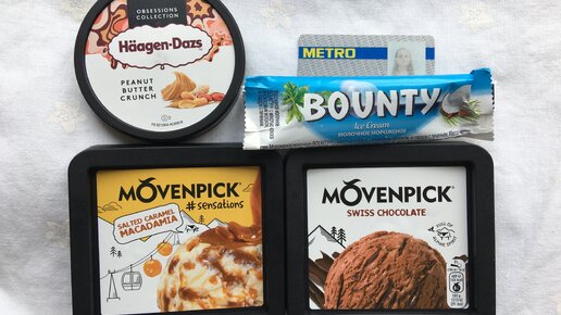 Купила мороженое за 879 рублей за банку на распродаже в METRO. Показываю, что внутри