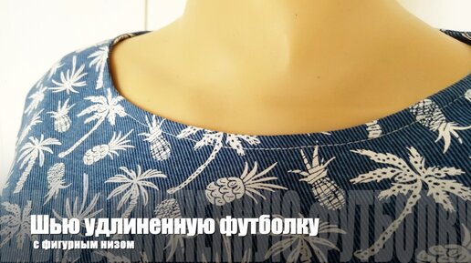 Как шить футболку. Обработка горловины бейкой из основной ткани.