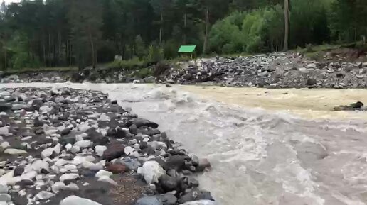 Двухцветная река. Место для рыбалки на каменистой горной реке