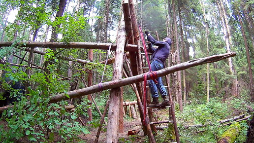 За пределами возможности. Работа по подъему объемных бревен. Технология